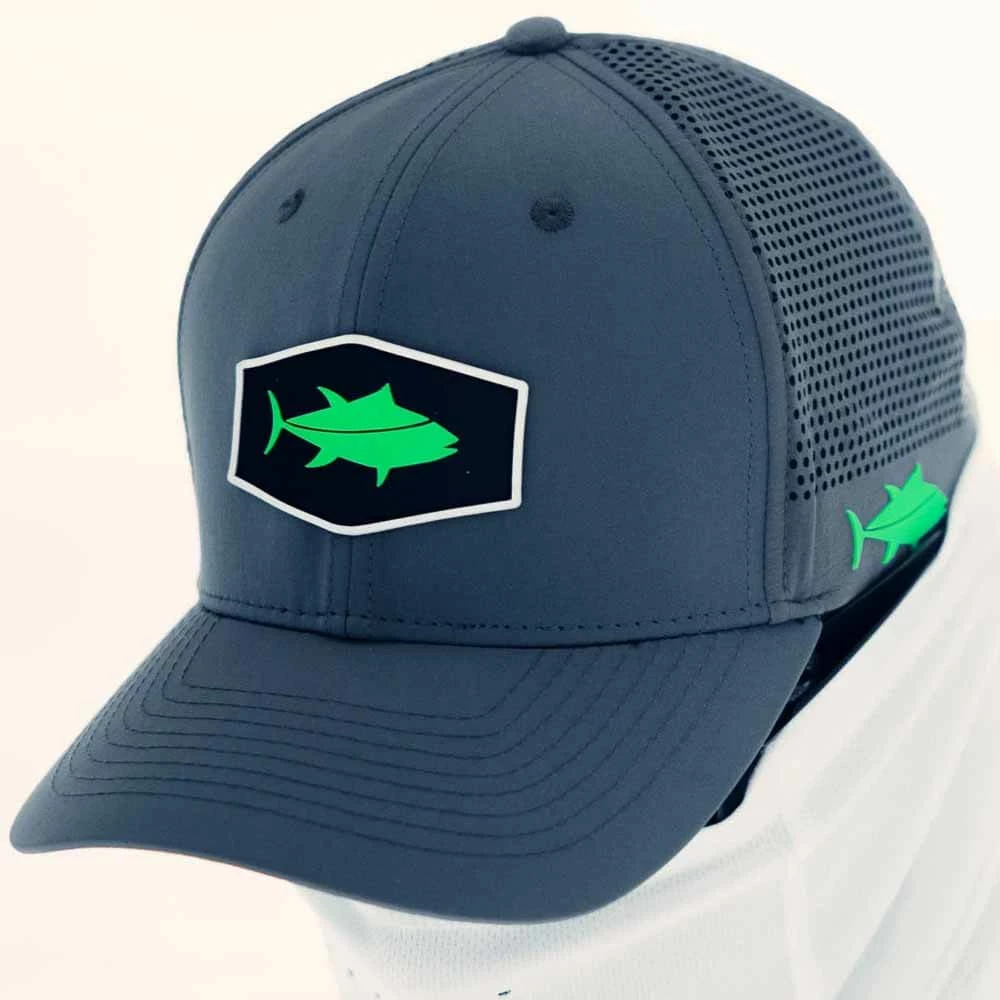The Pro-Series Billfish Gear Tuna 3D Trucker Hat Grey represents one thing: Performance. Its Nylon-based fabric (instead of the standard cotton) makes this hat extremely lightweight & breathable. Unlike hats made out of Cotton, Billfish Gear’s Pro-Series will not get the circular sweat stains and will retain its shape even after being washed or submersed. The side panels feature a double layer, spandex based structure which provides for breathability as well a snug fit, perfect for when it’s blowing 25+ knots. Traditional trucker hat design, with a touch of innovation. One Size Fits most (Adjustable Strap).