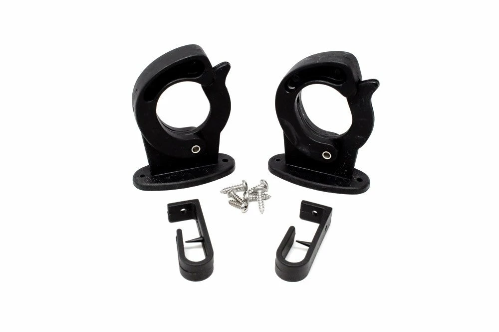 Prop 65 Warning CABlack’s Sure-Lok Black Rod Hanger fits all types of rods and reels. Rods pop in and lock. Fast, simple one-hand removal. Made of solid nylon. Stainless steel screws and spring. For overhead or side mount. 2 pk.