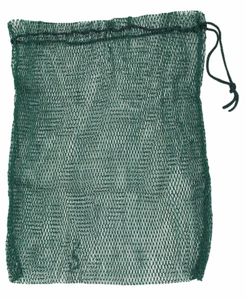 Made of heavy-duty nylon fibers. Has a drawstring at the top to secure opening. Holds up to 20lbs. Dimensions: 18″ x 19″