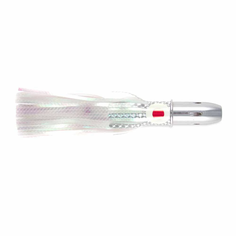 Prop 65 Warning CAThe Smoke Rattle and Troll is the same size and shape as the Super Magnum. This 6 oz head is machine drilled with five vent holes which creates a larger smoke trail. It also has internal chambers with stainless steel balls that rattle when trolled between 2 to 20 knots