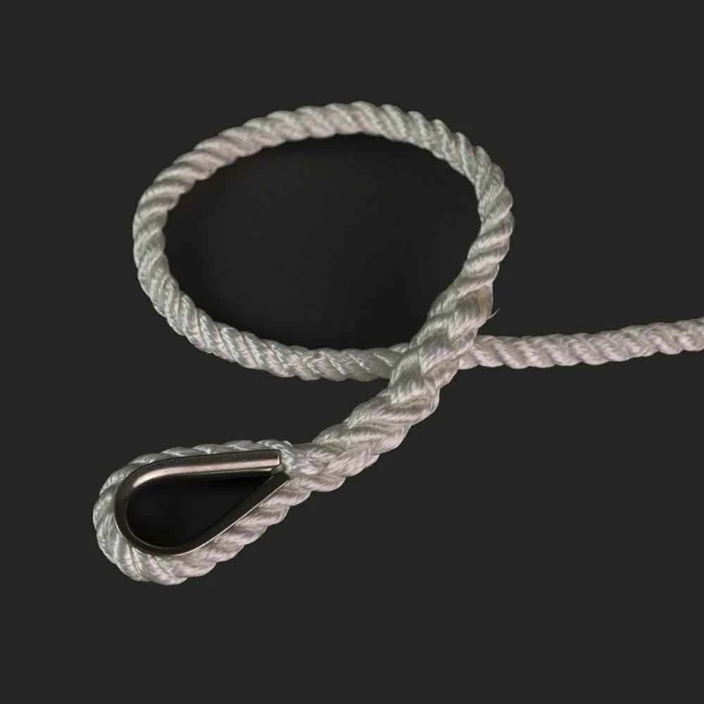 Anchorlines can be made to your specification with either a galvanized or a stainless steel thimble. Manufactured with high quality nylon 3 strand rope, these anchorlines are both strong and durable.