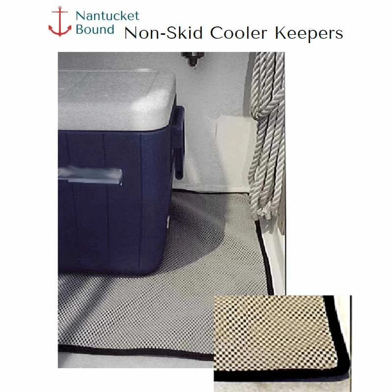The Nantucket Non-Skid Cooler is a brand new soft foamy mat, that is placed underneath to the cooler to keep it from sliding around your boat. Lets imagine how year after year, this is one of our best sellers!Keeps coolers, tackle boxes, cutting boards, anything that can slide…in place!Mat is made of non-slip closed-cell foam underlay, treated to prevent odor-causing bacteria, mold and mildew.Bound on all sides with 1 inch polypropylene webbing. Sizes to fit coolers from 25 quarts to 162 quarts.