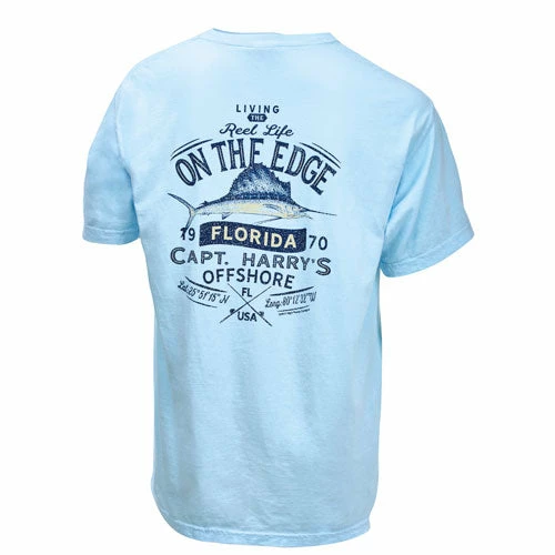 Prop 65 Warning CAThis Beeline Sailfh S/S Lt Bllue design features 100% cotton construction with left chest and full back designs.