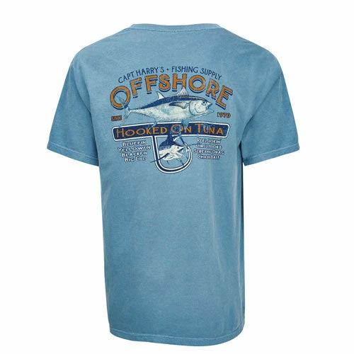 Prop 65 Warning CAThe Warden Tuna S/S Ice Blue t-shirt features 100% ring spun cotton construction.