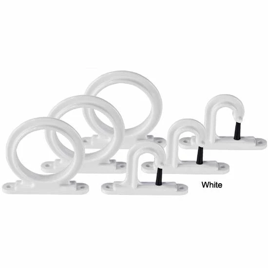 Prop 65 Warning CADubro White Pro Series Rod Holders are easy to install holders for your boat, garage or shed. Mounts on the ceiling or wall, vertically or horizontally. Package of three for rods with handles up to 1″. Mount with #8 size sheet metal or wood screws (not included). 3 sets per pack.
