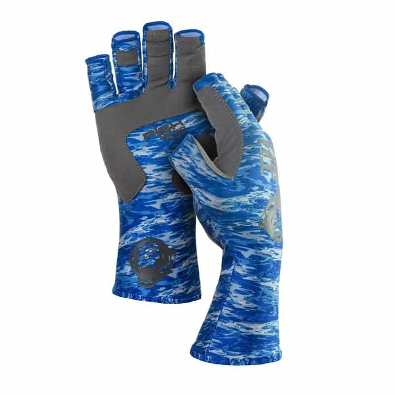Fish Monkey Blue Water Camo Half Finger Guide Gloves FM11