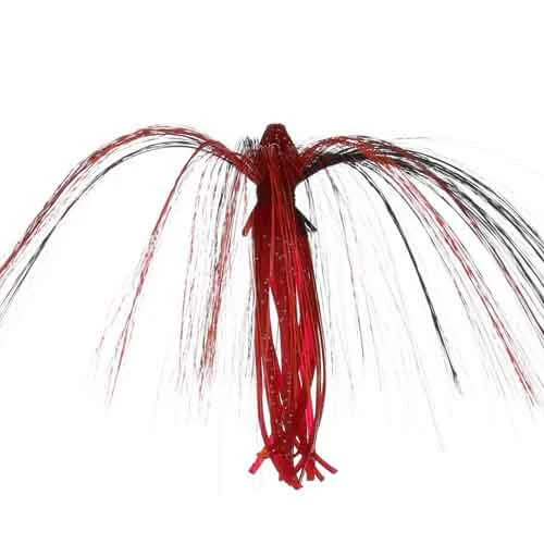 Becoming one of the most productive lures fished today. This hand tied high performance lure features a ½ oz lead head inside a 4 ½ inch squid skirt with the right amount of straight nylon hair secured to a non-slip collar. Bleeding dolphin color is yellow and green hair with a strip of red hair.