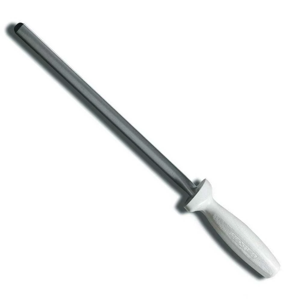 The Dexter 10IN Sani-Safe Diamond Sharpener is the perfect tool to give your knife a brand new edge. They are designed to shave away the blade creating new teeth for the blade to use, where as a honing steel realigns the teeth without removing them. The butcher steel is a maintenance tool and should be used often to keep your knives in great condition. Eventually your knife will not be able to be honed to a usable edge and that’s where the diamond sharpener comes in. Using your steel is like brushing your teeth, you want to do it often. Sharpening knives is like going to the dentist, you only want to do that once or twice a year.
