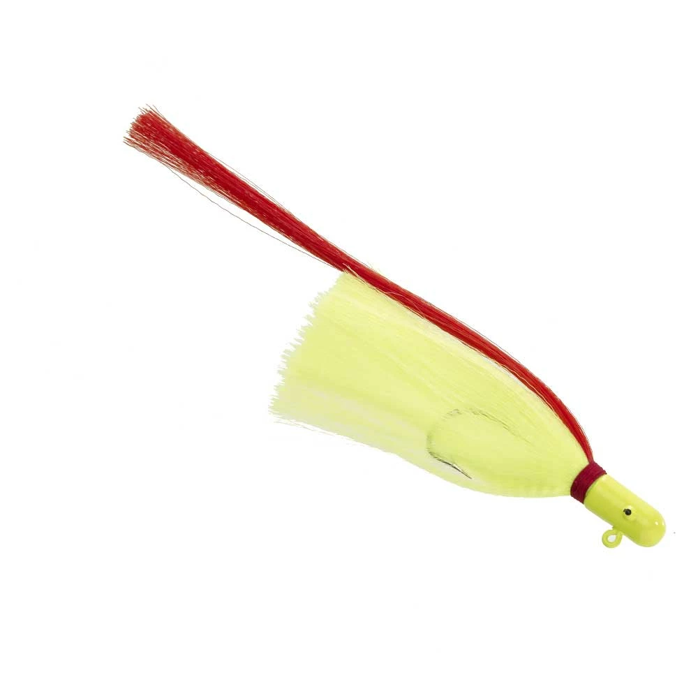 Prop 65 Warning CAThe Flair Hawk Jigs feature black bump eyes, flared nylon and a long red tail making this Snook jig a favorite among fishermen. The extra flare on these lures gives the maximum puff and flutter action that has proven effective Snook, Tarpon, and Cobia