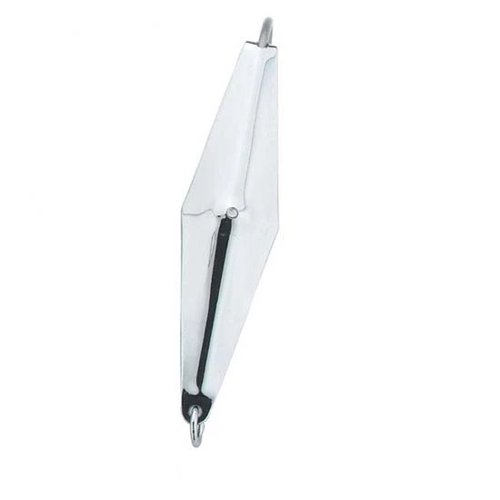 A highly proven fish producer for both fresh and saltwater game fish. Scientifically designed to give the life-like motions of a bait fish. Diamond-shaped for maximum reflection. Features chrome plated brass and Mustad hook. Excellent for both casting and trolling.