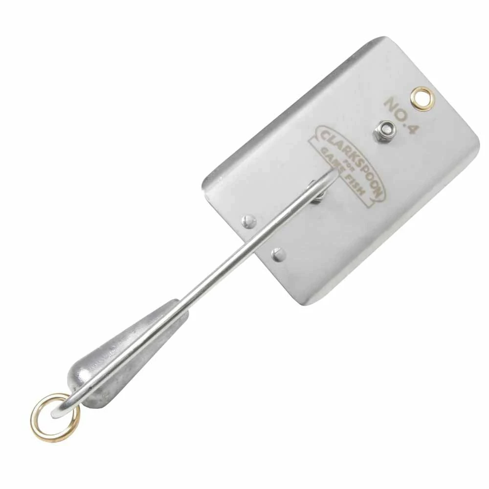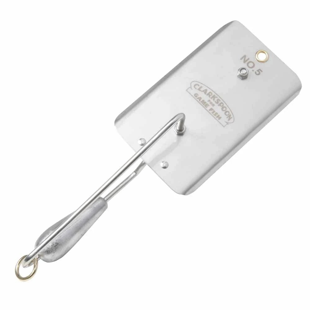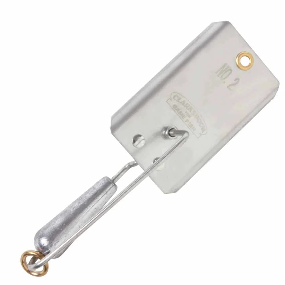 Clarkspoon planers are designed to work effectively at almost any trolling speed. Attach hand line or rod/reel line to brass ring and leader/lure to hole in blade. After feeding leader/lure into water, submerge weighted end of planer into water at downward angle. Planer will trip upon strike and return surface. Available in size 1, 2, 3, 4 and 5.