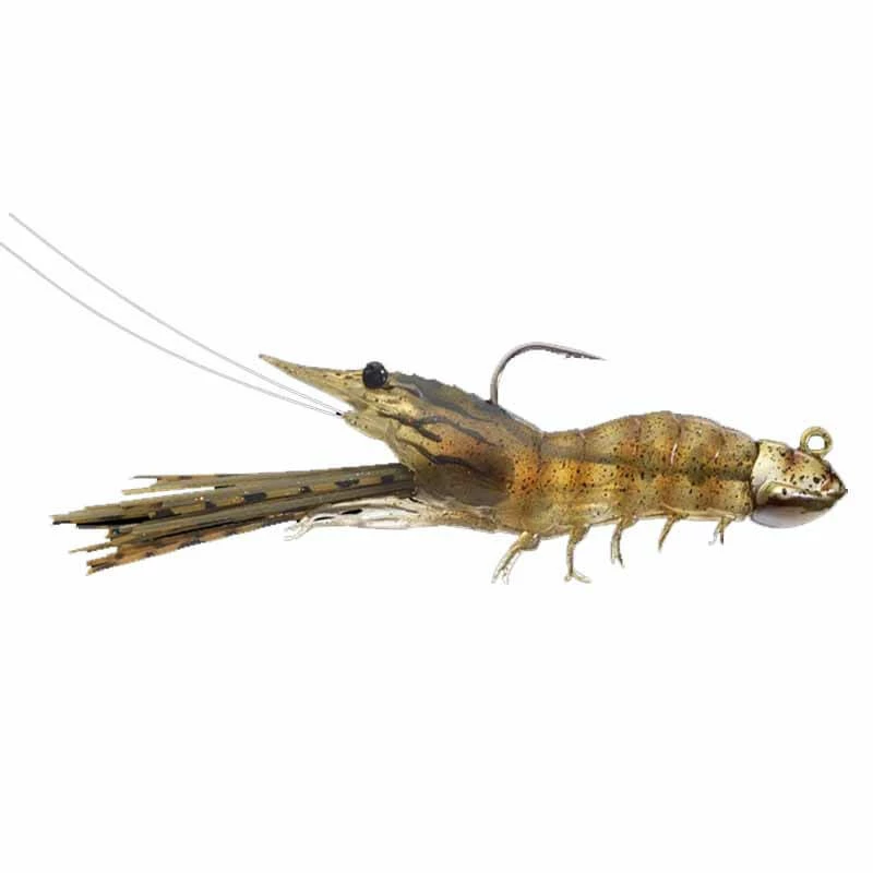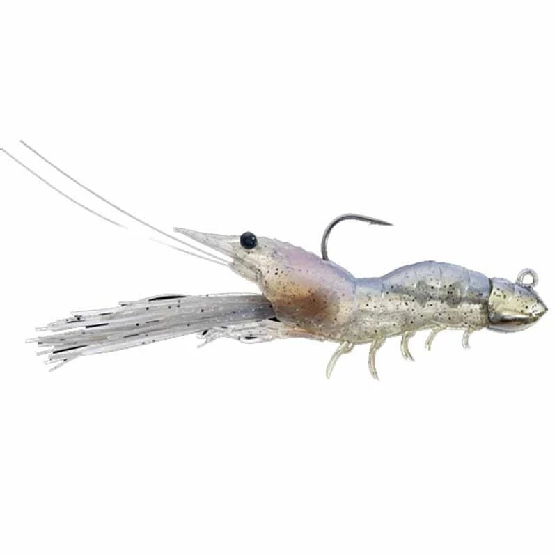 The LIVETARGET Fleeing Shrimp soft lure, bristling with three-dimensional anatomical features, is rigged on a custom jig head and armed with a strong, corrosion-resistant hook. The Shrimp’s silicone skirt animates the lure’s appearance by mimicking the action of a live shrimp’s front legs while in motion and at rest. The Fleeing Shrimp combines realistic anatomy, profile, colors, sound, scent, and action to provoke aggressive feeding responses from inshore predators. Glass rattle. Shrimp scented. Comes with one replacement body.