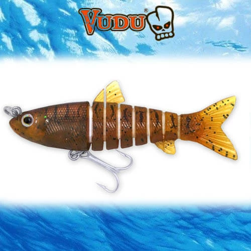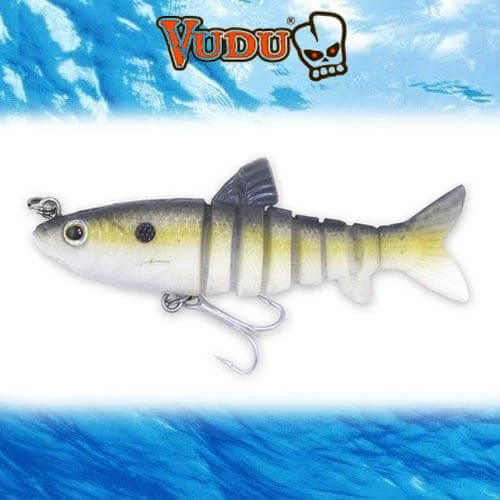 Rigged with a VMC Saltwater 4.0 hook and has an internal 2/4 oz weight for great casting distance. The Vudu Mullet is a medium sink lure and best with a medium retrieve. A stop n go retrieve is very effective. Crank a few times then let it fall for a second, then crank it again. Can be burned along the surface also.