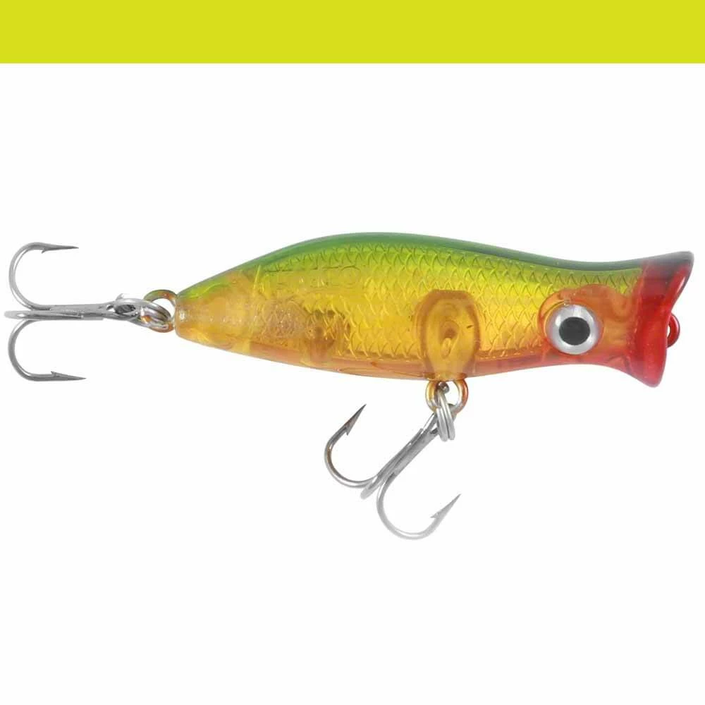 The popper floats at rest but is rear weighted for long accurate casting. When retrieved, the action can be changed by the level of the rod tip. Keeping the tip close to the water creates a massive bubble stream as the lure tracks through the water with a slight wiggling action. This can be particularly useful in rough surface conditions where the lure needs to be kept in the water to minimize cart wheeling.