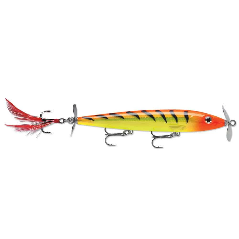 The Rapala XRPR11 X-Rap Prop Lure marks the X-Rap family’s entrance into this productive category. Simply by adding X-Rap Attitude Rapala has taken a good bait and made it great. Stainless Steel Props create X-size noise and splash, churning, spitting and gurgling with the slightest tug. Whether you’re fishing a snap and pause, straight or shredding retrieve, the counter-rotating blades ensure a straight track back to the boat. Tail drops down during pause allowing better hooks up. X-Rap finish with internal laser-etched scales and holographic foil create an impressive flash. Internal long-cast mechanism lets you cast into the most timid fish from far away, without spooking them with your boat. VMC® black nickel hooks all around with flash feather teaser tail on the stern. Hand-tuned and tank-tested to run straight and true right out of the box.