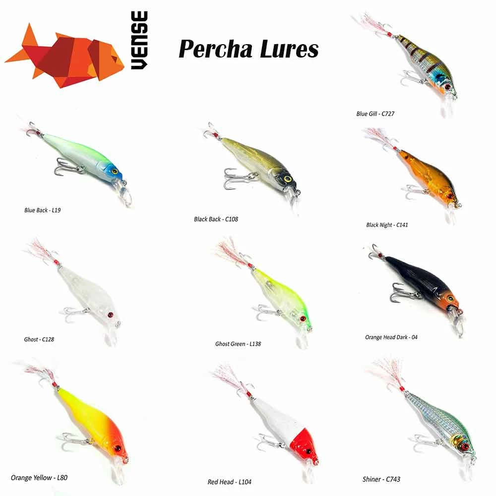 The Vense Percha Minnow Lures are a must have for your tackle box. Features bright colors, an internal rattling mechanism and VMC hooks.