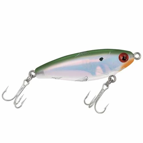 Prop 65 Warning CAMirrOlure 14MR MirrOdine Plug. This plug features extra strong hooks, life like patterns and colors, and 3D eyes. Also features a luminescence foil insert and a sonic rattle that both attract fish. Depth 0-2′.