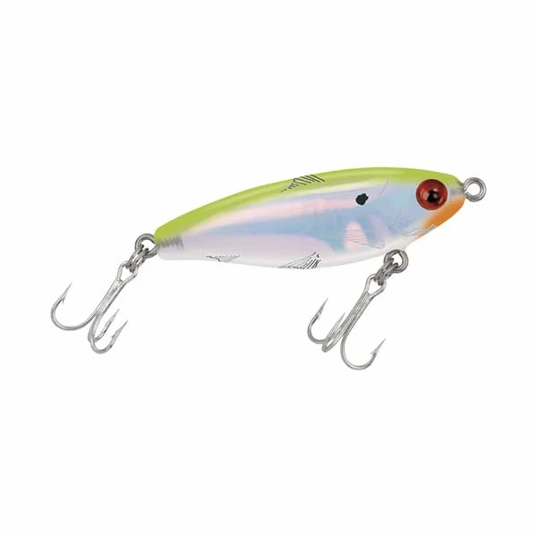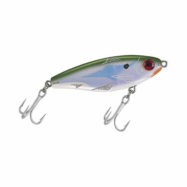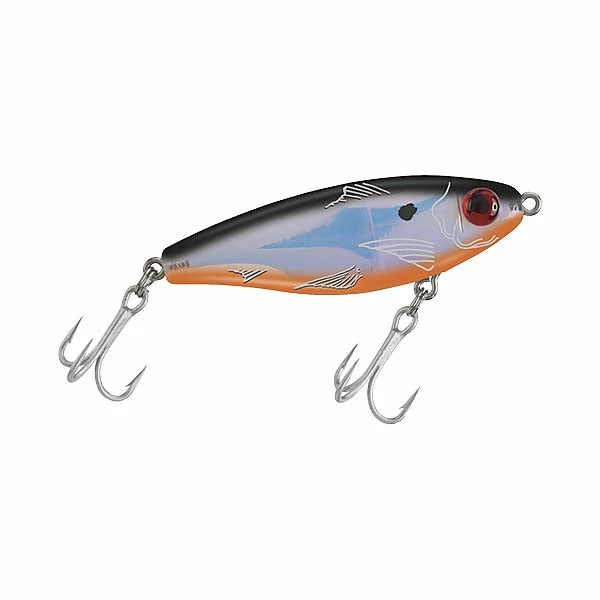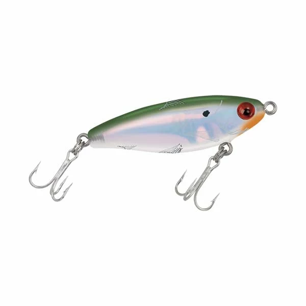 Prop 65 Warning CAMirrOlure 27MR MirrOdine XL Plug. The XL wide body profile and realistic baitfish pattern produces violent strikes. Features bright, reflective, luminescent inserts, “fish calling” rattles and natural 3-D eyes to enhance their realism, plus extra strong hooks. With a twitching retrieve, these baits dart from side-to-side, mimicking a wounded baitfish. Trout, Redfish, Snook, Striped Bass and Tarpon find the MirrOdines ® to be irresistible.