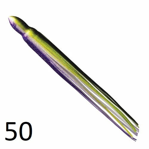 Prop 65 Warning CAOC 50 Octopus Lure Skirts. Use these multi color octopus skirts to rig our new lure selection or rig your old favorites. Skirt size 50, approximate length 12″, diameter 1 1/8″.