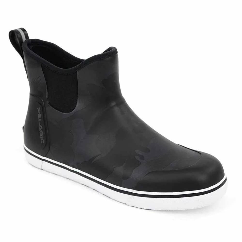 Pelagic Fish Camo Black Pursuit 6″ Deck Boot. Wet, dry or slogging over bloody decks, the Pelagic Pursuit 6” Deck Boot delivers the performance you can count on. An ultra-comfortable sole and Neotech Cooling Liner offers supreme comfort, while the heavy-duty, 100% waterproof rubber construction makes sure your feet stay completely dry. Combined with a reinforced toe and a custom PELAGIC non-slip, non-marking boat sole, and you’ve got the perfect deck boot to keep you at your best on the big blue! Made with 100% Waterproof Rubber.