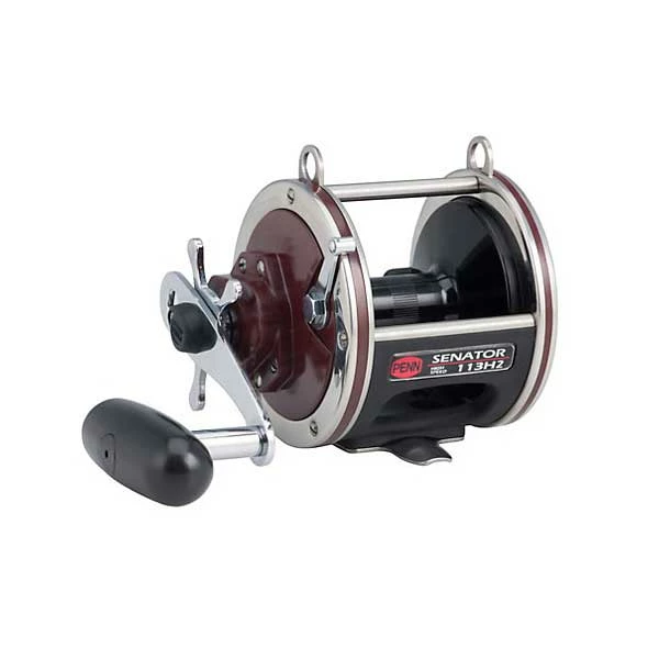 The “Special Senator” reel features a high speed gear ratio, stainless steel ball bearings and Star Drag braking system. These reels are designed for fishermen who require light tackle with extra power, speed and endurance. All reels have aluminum spools. Red sideplate.