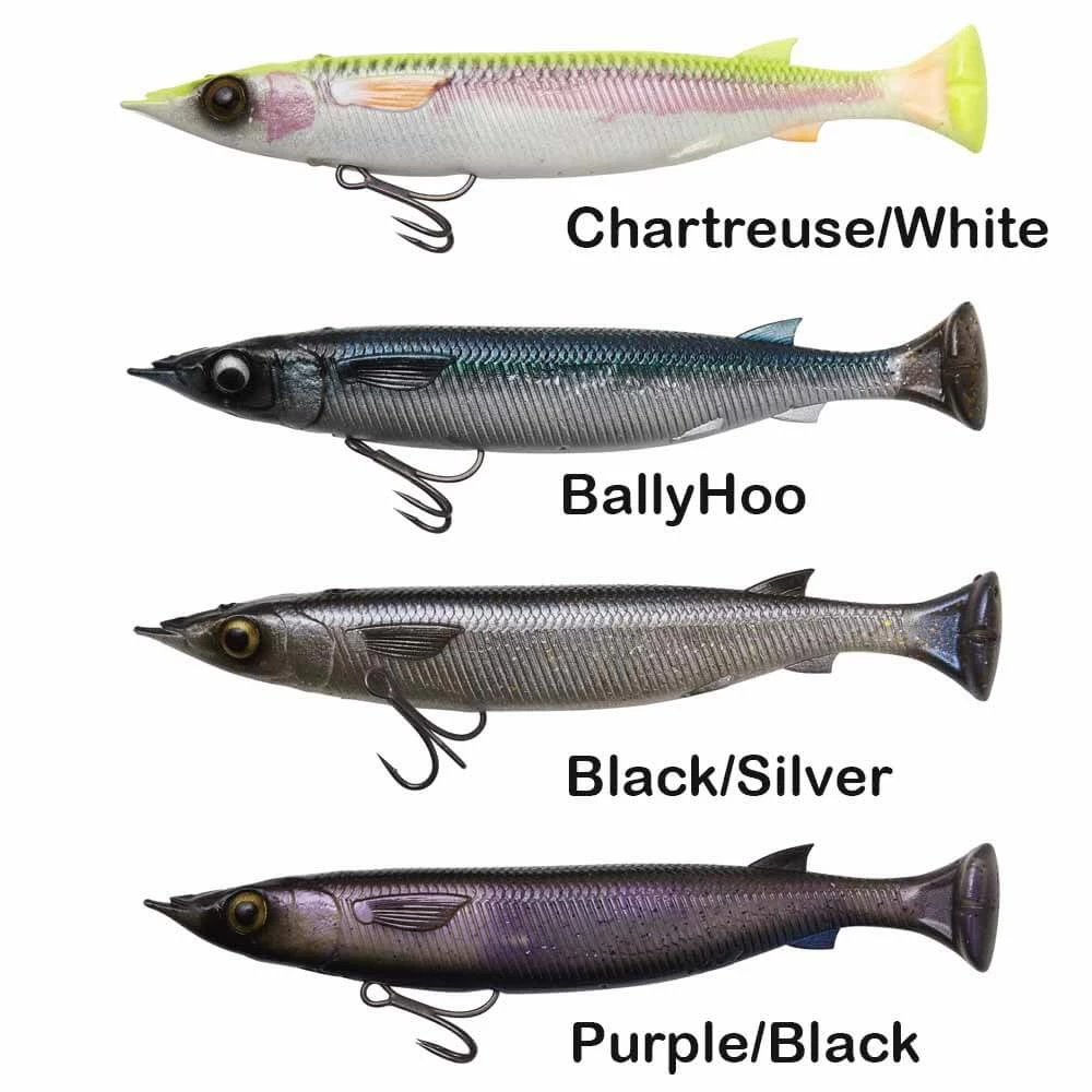 The ballyhoo: a baitfish that has earned the allegiance of saltwater anglers across the globe now, by virtue of Savage Gear’s patent-pending Pulsetail design, offers these anglers a lure as potent as the real thing. Equipped with built-in rattle and photoprint detail, the Ballyhoo is guaranteed to get the attention of predatory gamefish. Its line-thru design and heavy-duty hook make sure fish stay pegged during the wildest of acrobatic displays. Scent infused to trigger feeding and aggression.
