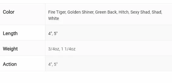| Color | GOLDEN, GREEN BACK, SEXY SHAD, SHAD |