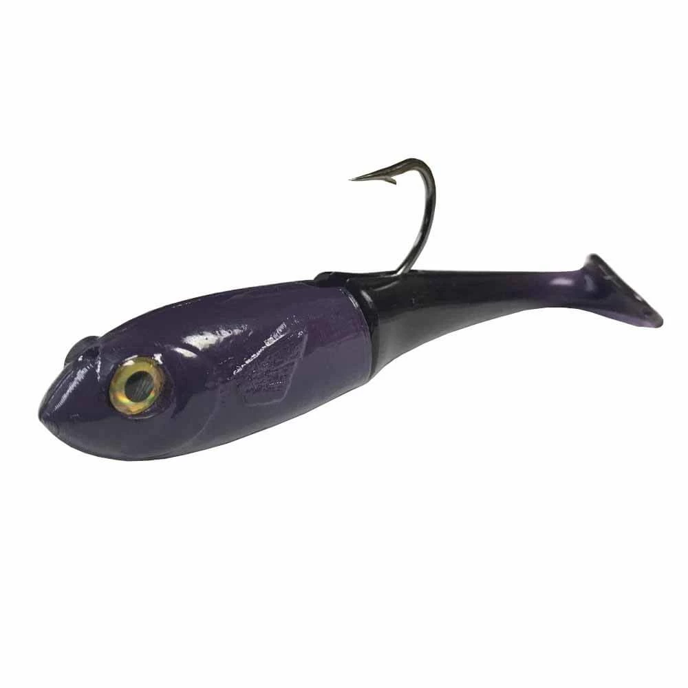 The head is made out of hard plastic with strong clear coat that will last many fish and the tail is made out of soft plastic for that awesome paddle tail action. Tail is designed to be fished super slow on the bottom or fast and has a natural fall. Evenly distributed weight allows lure to stay up right for natural action even when fished slow. Tail can be easily changed just by screwing it off and adding a new one. Comes with a 6/0 2X Strong Black Nickle Mustad hook.