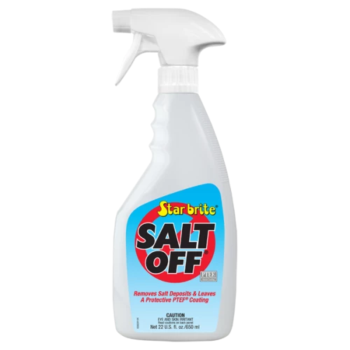 Prop 65 Warning CAStar Brite 22oz Salt Off Protector With PTEF. Salt Off® is specifically formulated to quickly and effectively remove salt deposits from metal, fiberglass, plastic or painted surfaces. It contains special polymers that bond to the treated surface to help prevent the formation of future deposits. Depending on the application, Salt Off® can be sprayed directly onto the surface to be treated and then rinsed with fresh water, or simply left in place.