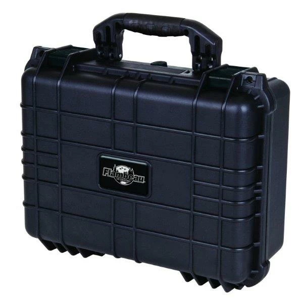 The Flambeau 1410HD comes equipped with over-molded handles and diced “pluck” foam in the base for full customization. The Medium HD case features thick ribbed walls and our Zerust tab for rust protection and is perfect for multiple hand guns and pistols. It is waterproof with an air-tight seal and airline ready with a pressure screw. 14.75″ L x 10.25″ W x 6″ D