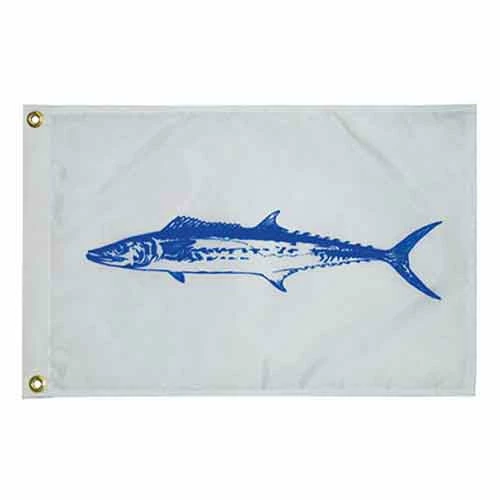 Prop 65 Warning CAKingfish Outrigger Flag. Fish flags are raised on the outrigger to show what you have caught. All rectangular flags are 18″w x 12″h