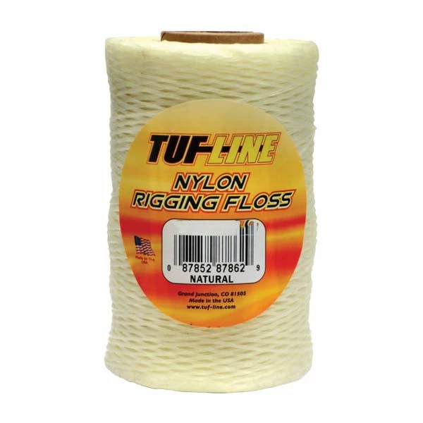 Waxed 1/2lb Natural Rigging Floss. Available in three spool sizes and in 30lb, 50lb, and 70lb test. Natural.