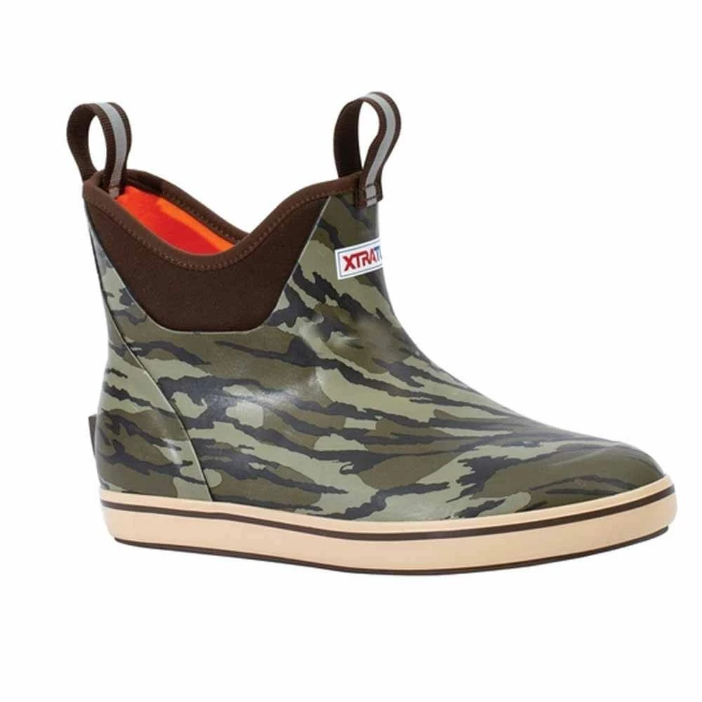 XTRATUF. XMAB-MOB. MENS 6 INCH ANKLE DECK BOOT. MOSSY OAK BOTTOMLANDS CAMO. The Ankle Deck Boots have been crafted specifically for sport and recreational fisherman. Anglers are athletes and they need proper footwear to help them perform at their best.